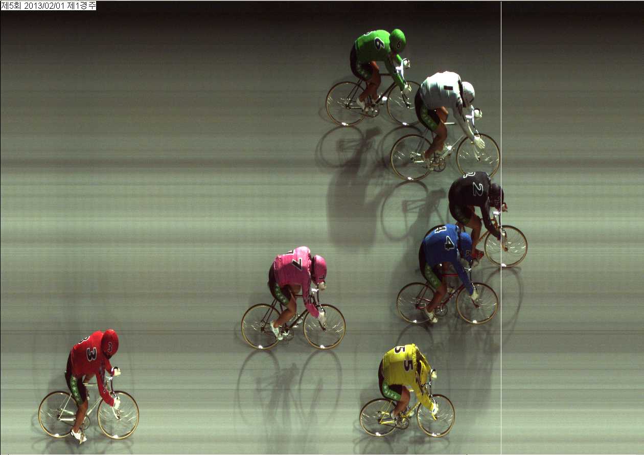| 제5회차 1일째 1경주(2013년 2월 1일) 2위 착순판정사진 | |