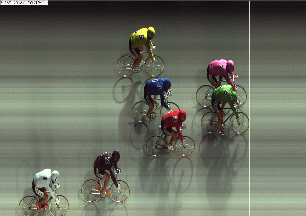 | 제13회차 1일째 5경주(2013년 4월 5일) 1위 착순판정사진 | |