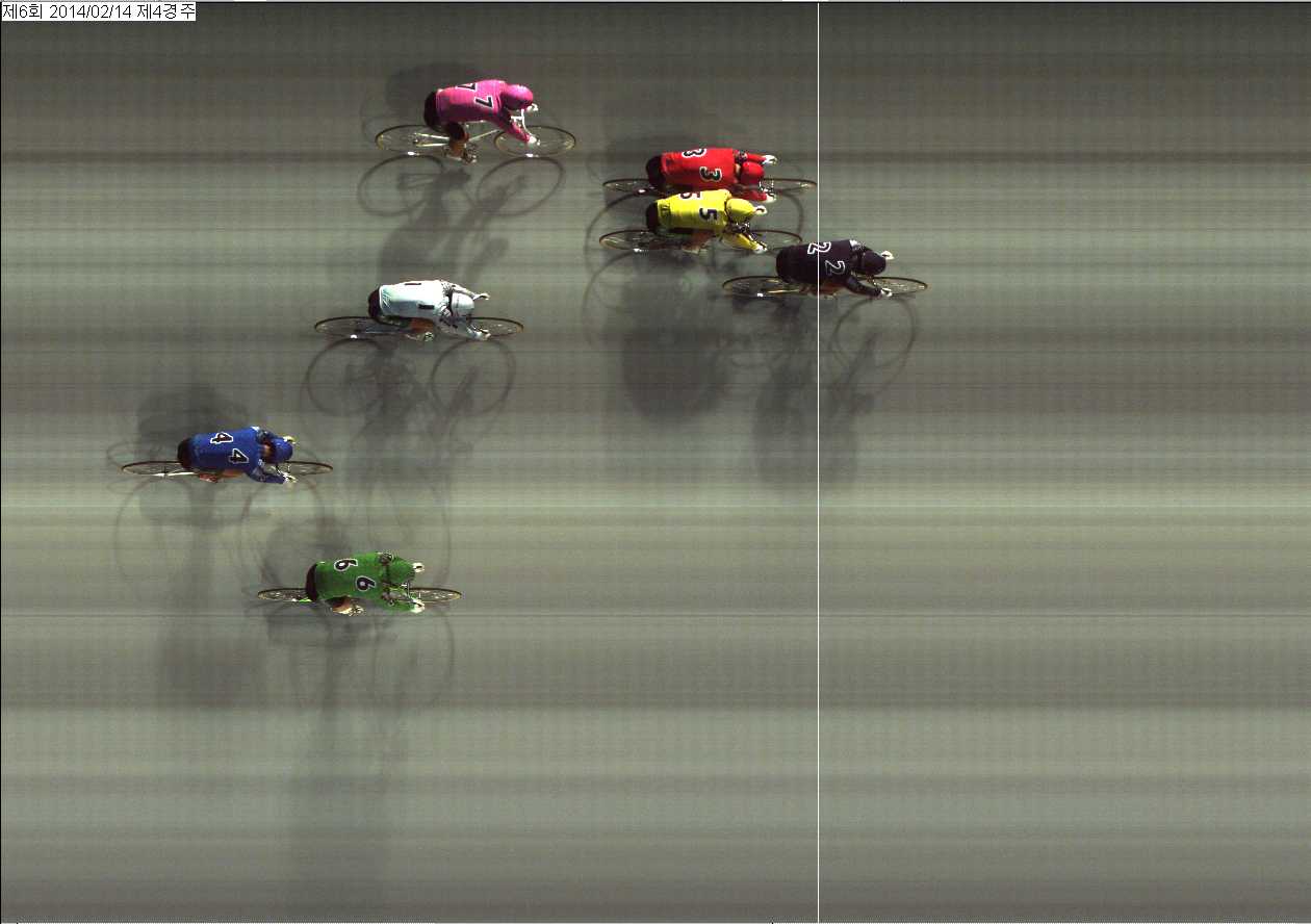 | 제6회차 1일째 4경주(2014년 2월 14일) 2위 착순판정사진 | |