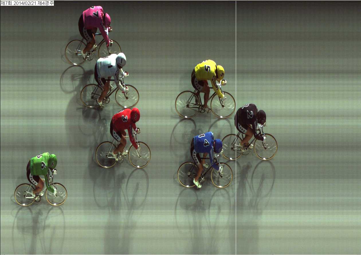 | 제7회차 1일째 4경주(2014년 2월 21일) 2위 착순판정사진 | |