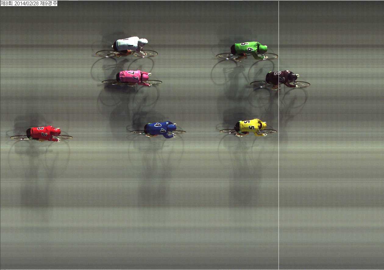 | 제8회차 1일째 9경주(2014년 2월 28일) 2위 착순판정사진 | |