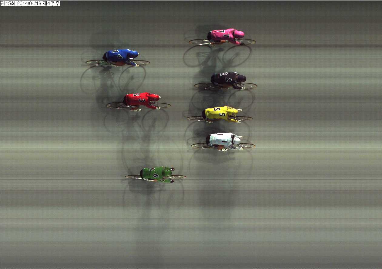 | 제15회차 1일째 4경주(2014년 4월 18일) 2위 착순판정사진 | |