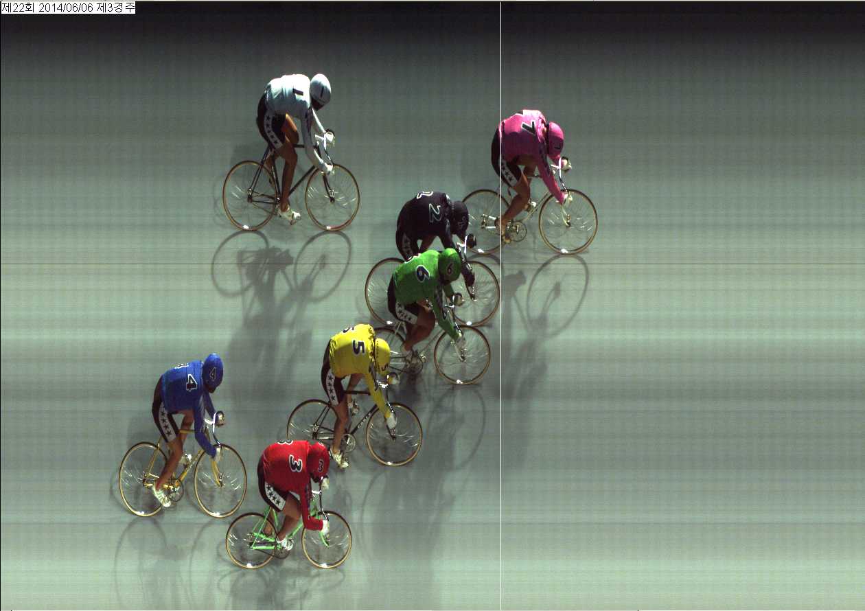 | 제22회차 1일째 3경주(2014년 6월 6일) 2위 착순판정사진 | |