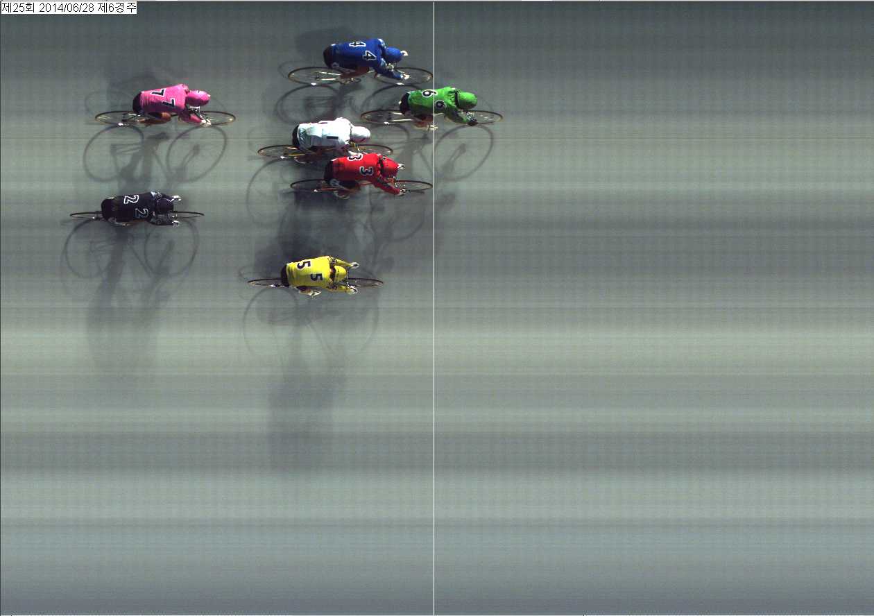 | 제25회차 2일째 6경주(2014년 6월 28일) 2위 착순판정사진 | |