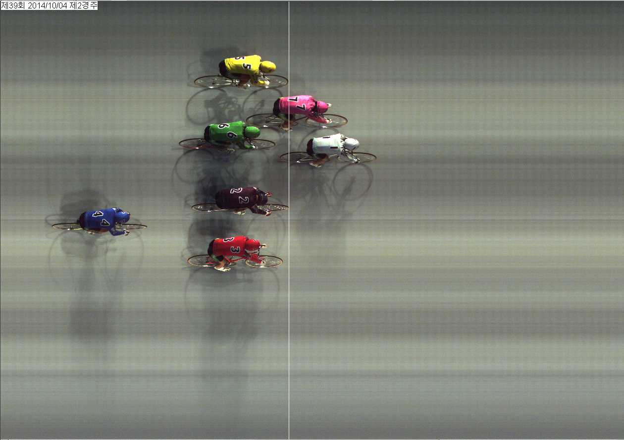 | 제39회차 2일째 2경주(2014년 10월 4일) 3위 착순판정사진 | |