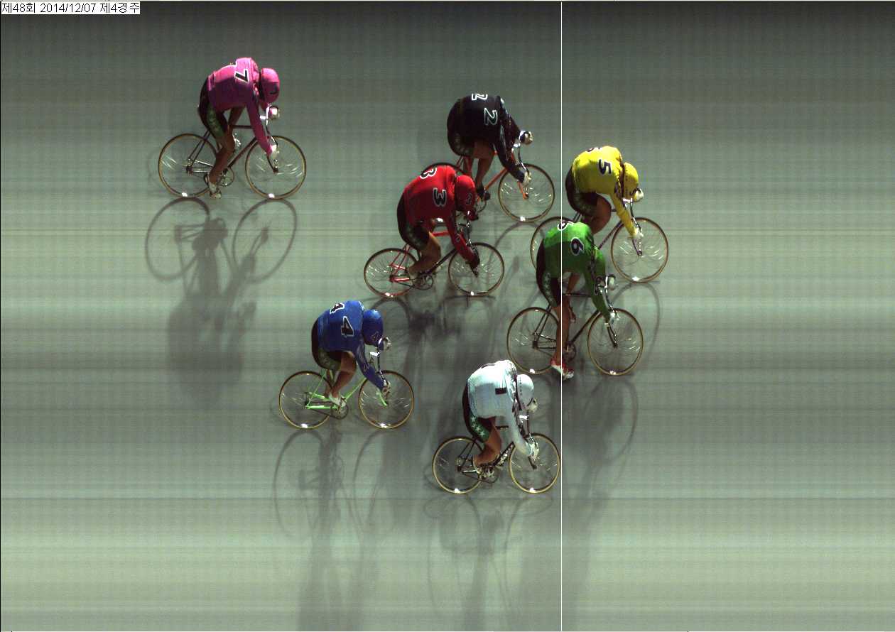 제48회차 3일째 4경주(2014년 12월 7일)에서 3위 김영진[1번]선수와 4위 임범석[2번]선수가 1/8W(바퀴)차로 들어왔습니다. |