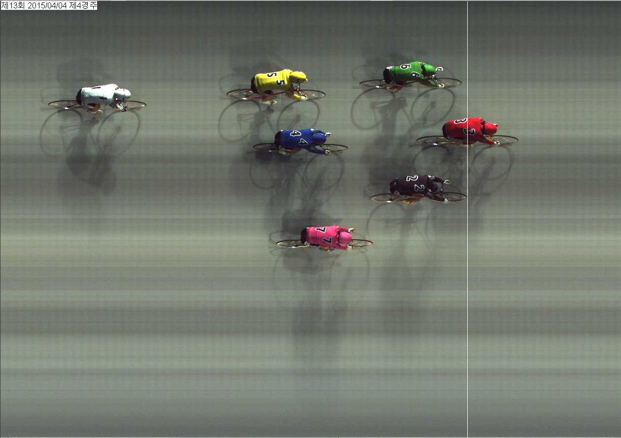 | 제13회차 2일째 4경주(2015년 4월 4일) 2위 착순판정사진 | |