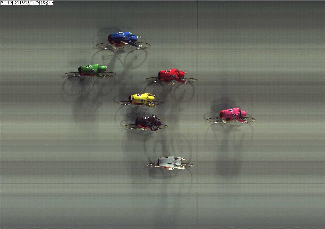 | 제11회차 1일째 15경주(2016년 3월 11일) 2위 착순판정사진 | |
