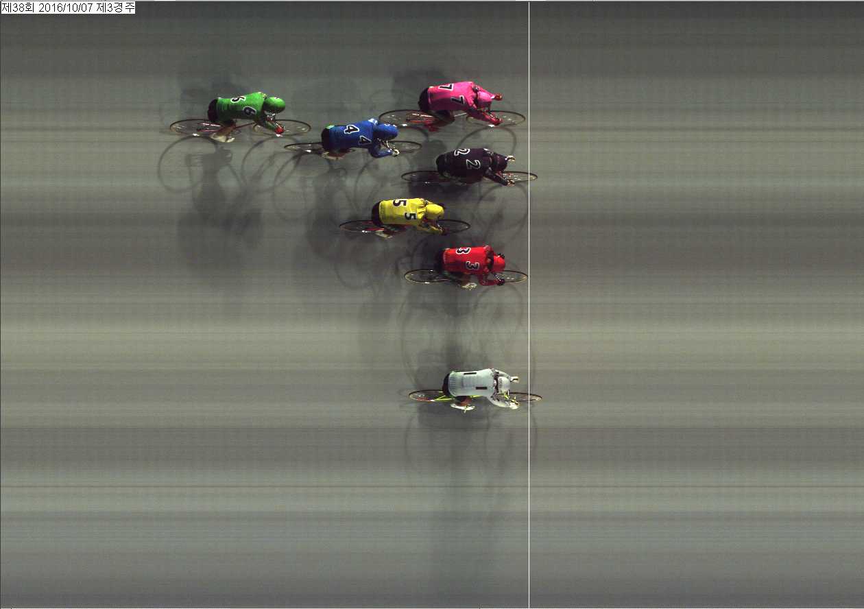 | 제38회차 1일째 3경주(2016년 10월 7일) 3위 착순판정사진 | |