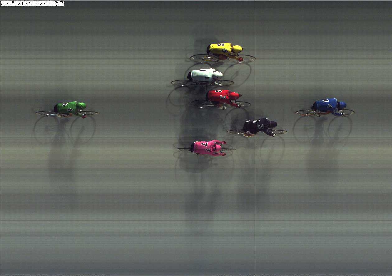 | 제25회차 1일째 11경주(2018년 6월 22일) 3위 착순판정사진 | |