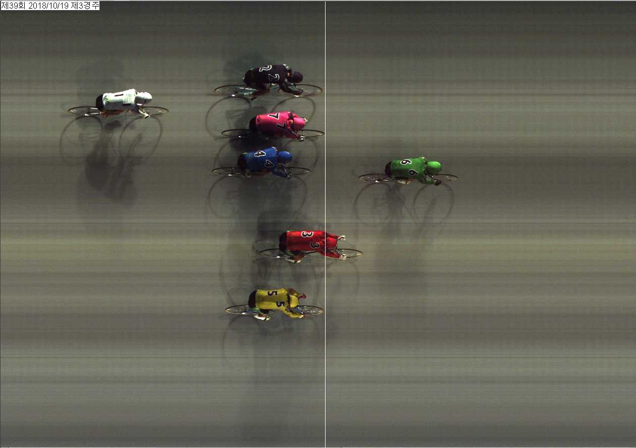 | 제39회차 1일째 3경주(2018년 10월 19일) 3위 착순판정사진 | |