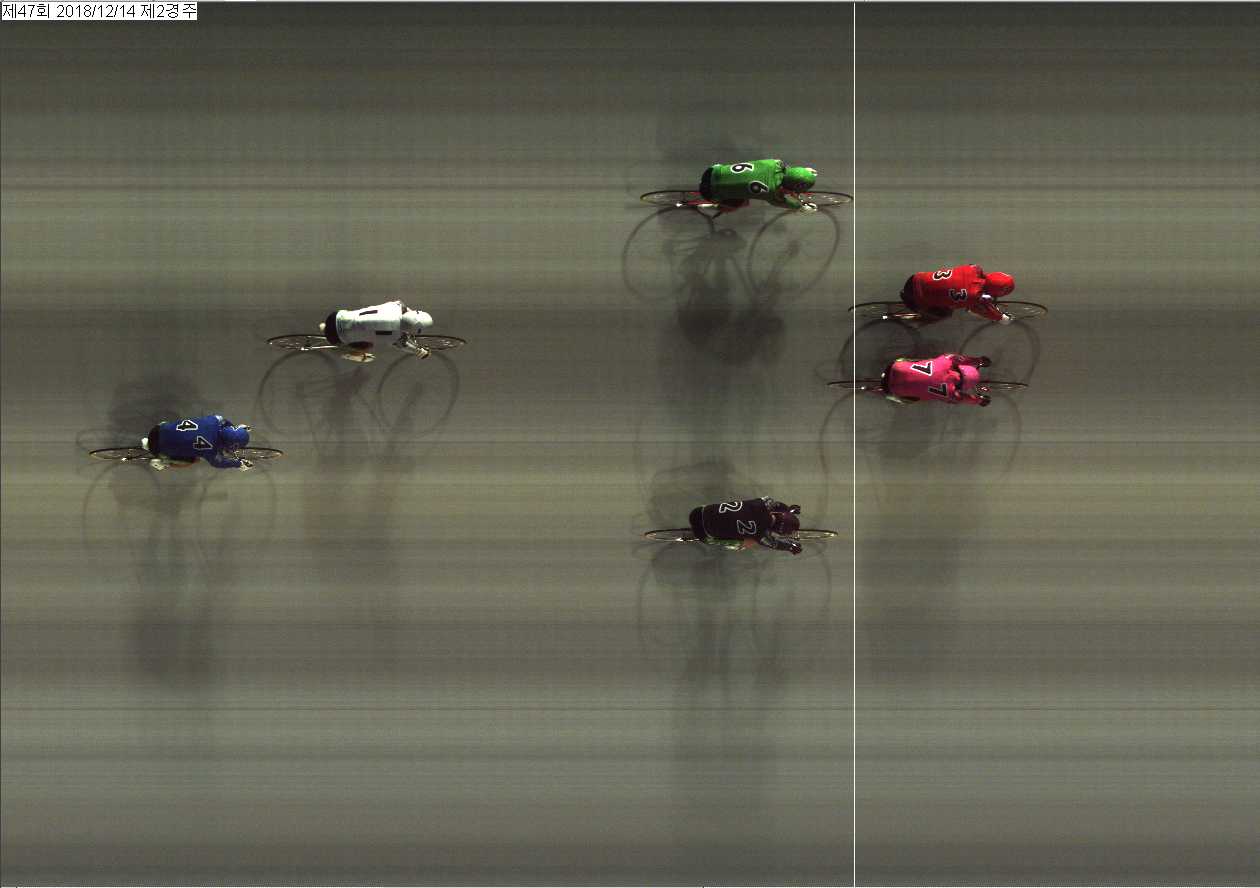 | 제47회차 1일째 2경주(2018년 12월 14일) 3위 착순판정사진 | |