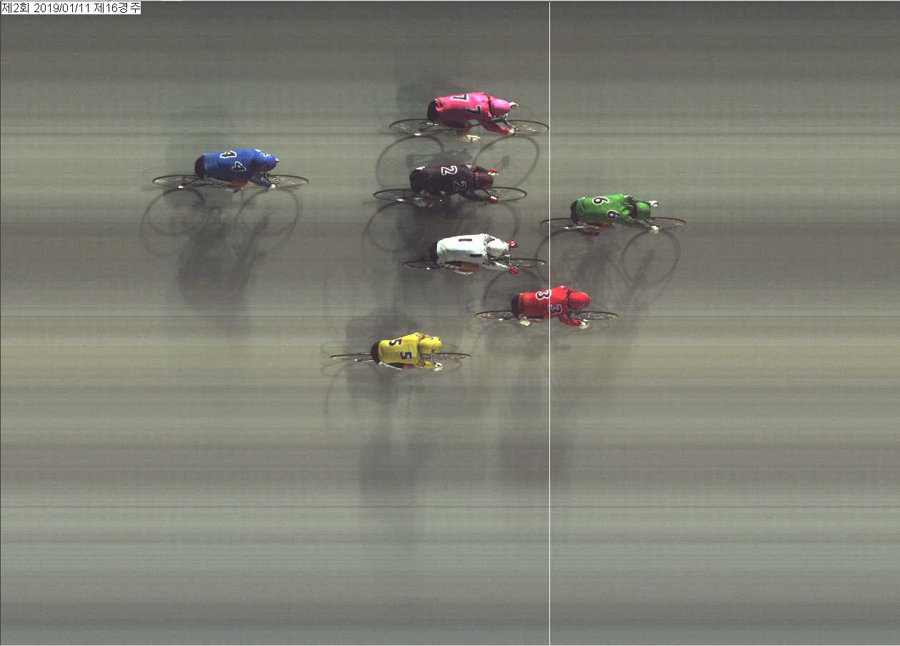 | 제2회차 1일째 16경주(2019년 1월 11일) 3위 착순판정사진 | |