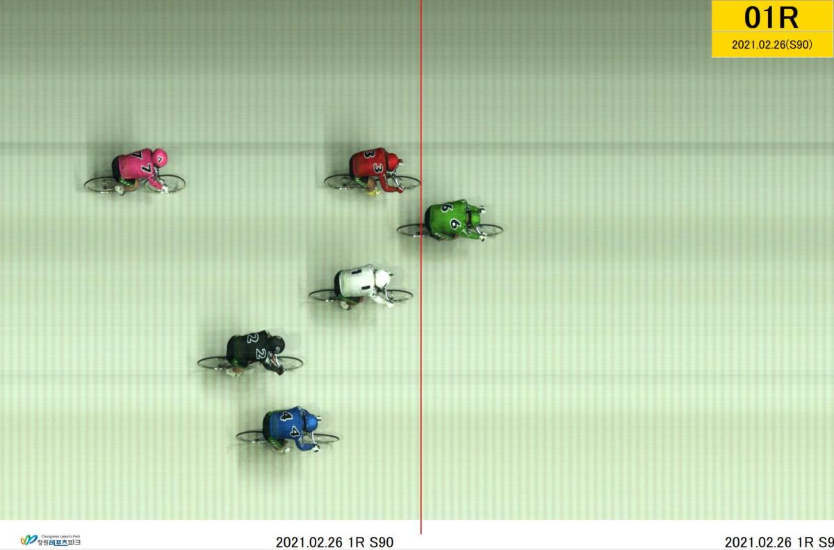 | 제9회차 1일째 1경주(2021년 2월 26일) 2위 착순판정사진 | |