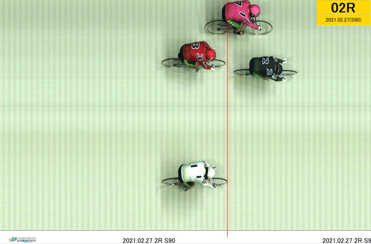 | 제9회차 2일째 2경주(2021년 2월 27일) 3위 착순판정사진 | |
