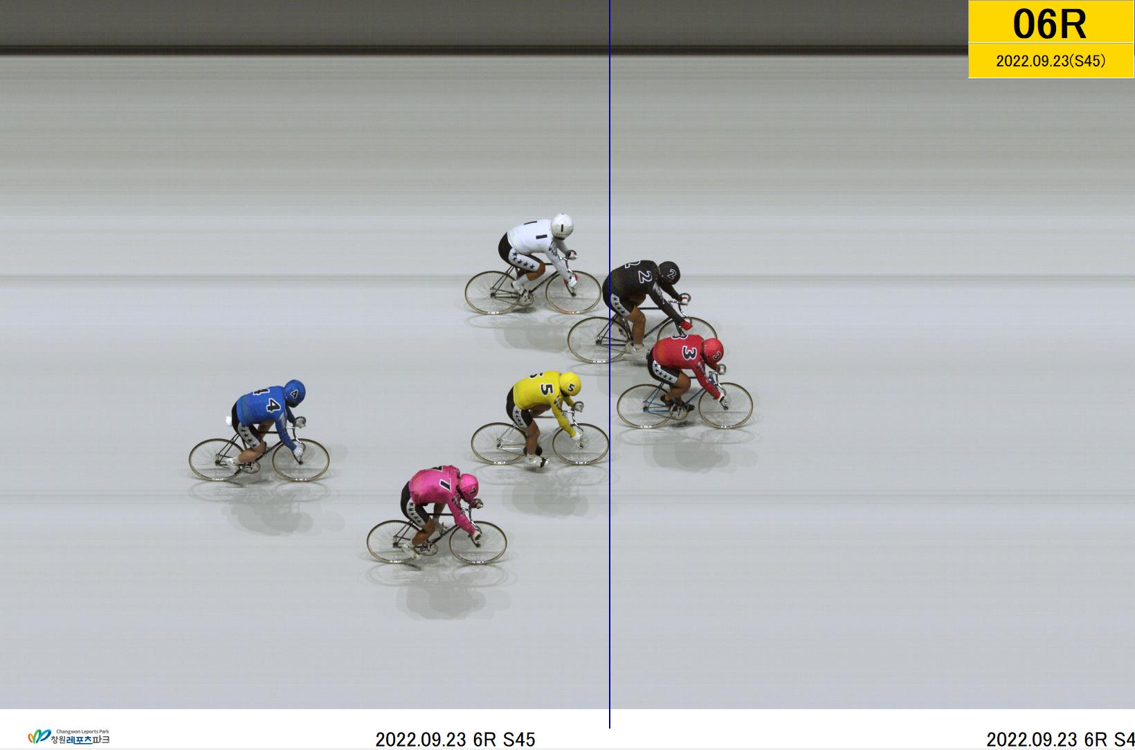 제39회차 1일째 6경주(2022년 09월 23일)에서 3위 이상준[5번]선수와 4위 김명중[1번]선수는 1/8W(바퀴)차로 들어왔습니다. * 사진을 클릭하면 원래 크기대로 보실수 있습니다. |
