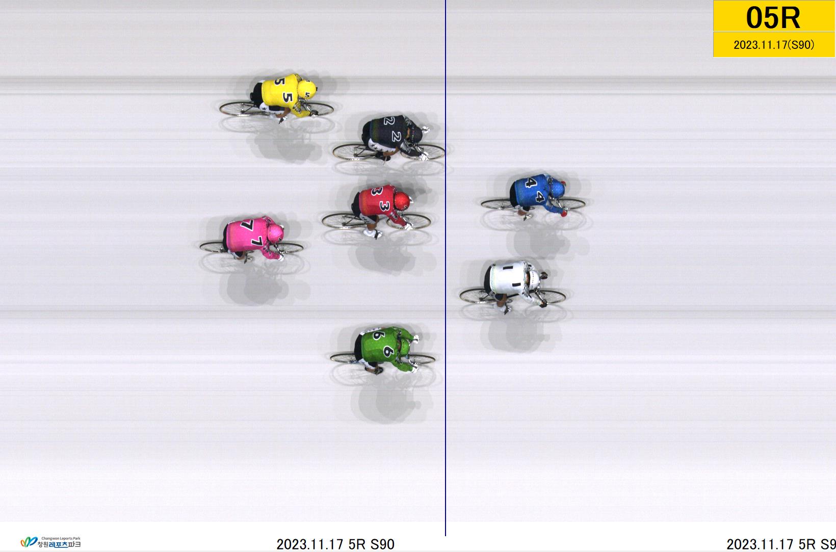 제46회차 1일째 5경주(2023년 11월 17일)에서 3위 배석현[2번]선수와 4위 송대호[6번]선수는 1/8W(바퀴)차로 들어왔습니다. * 사진을 클릭하면 원래 크기대로 보실수 있습니다. |