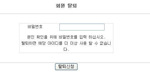 3. 비밀번호를 입력후 "탈퇴신청" 버튼 클릭