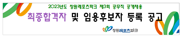 | 2023년도 창원레포츠파크 제3회 공무직 공개채용 최종합격자 및 임용후보자 등록 공고 | |||||||||||