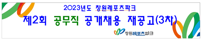 | 2023년도 창원레포츠파크 제2회 공무직 공개채용 재공고(3차) | |