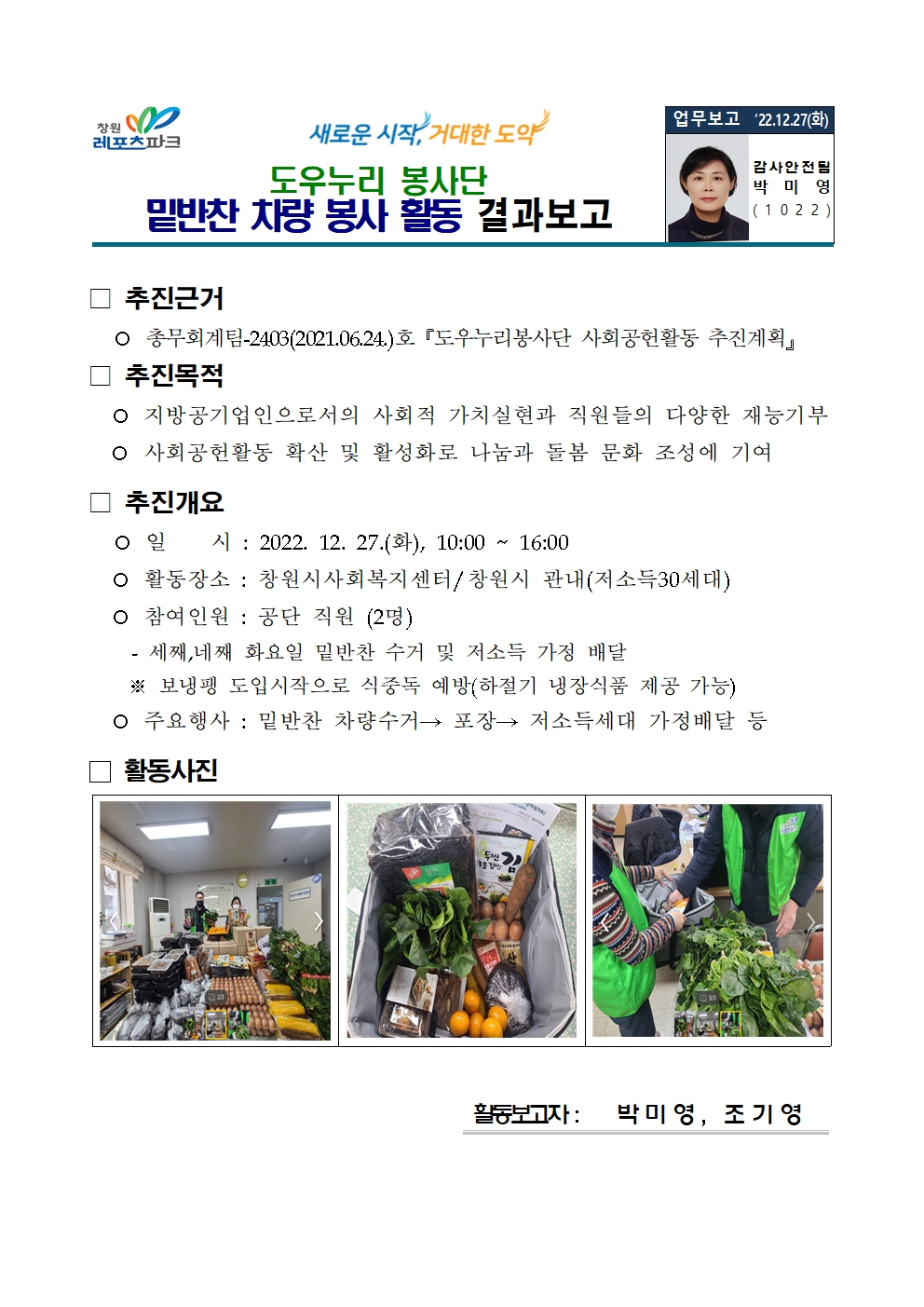 | [도우누리봉사단]밑반찬 나눔봉사활동 결과 보고 | |