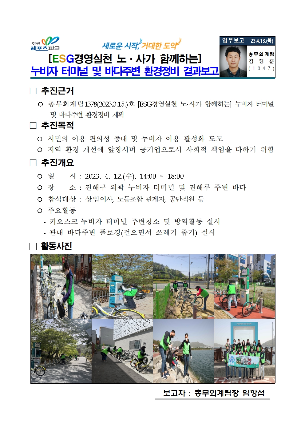 | [ESG경영실천 노·사가 함께하는] 2023년 상반기 외곽지역 누비자 터미널 및 바다주변 환경정비 | |